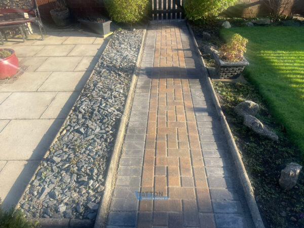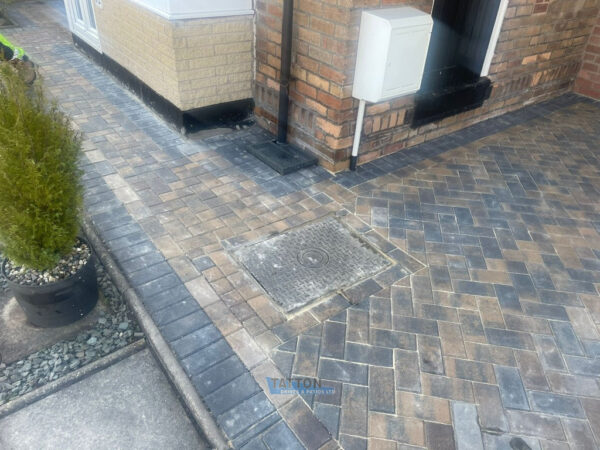 Bracken Paved Driveway and Pathway with Charcoal Borderline in Old Trafford