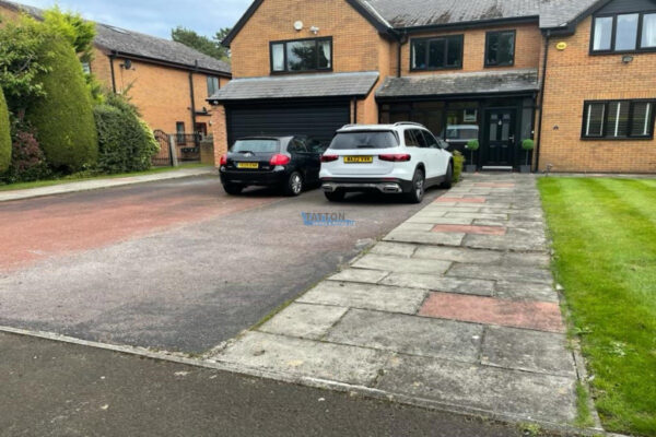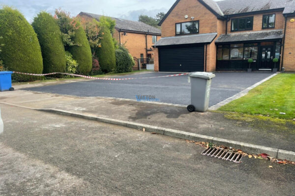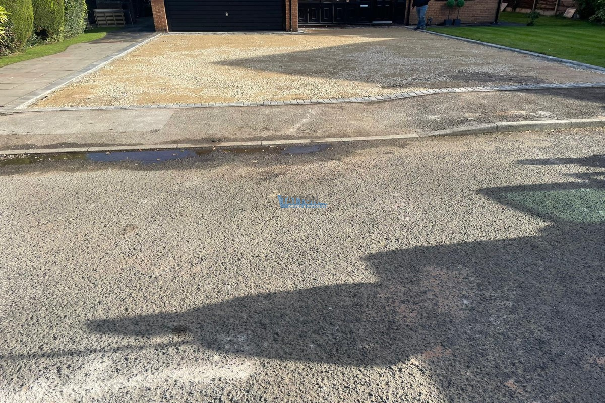 Dug out and removed the areaTatton Drives and Patios installed a new driveway in Altrincham, featuring a tarmac top surface with Pedesta slate borderline.
